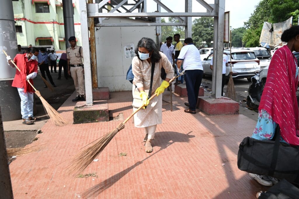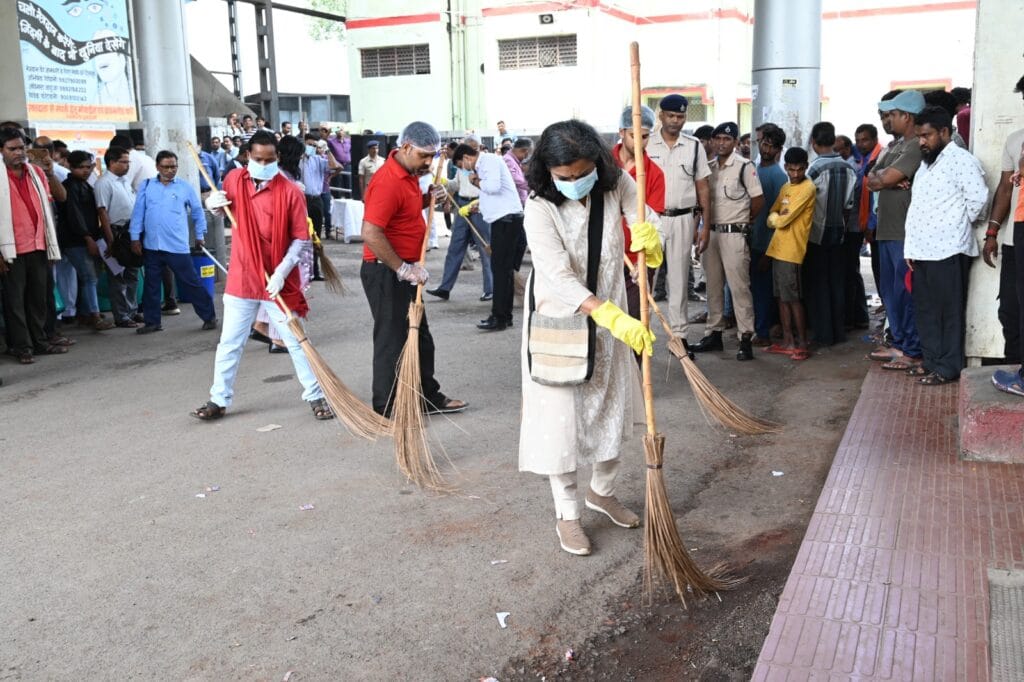 बिलासपुर रेलवे स्टेशन परिसर में शनिवार को महाप्रबंधक सुश्री नीनु इटियेरा के नेतृत्व में श्रमदान के तहत सफाई कर स्वच्छता जागरूकता का संदेश दिया गया। इस श्रमदान में सभी विभागाध्यक्ष, मंडल रेल प्रबंधक, बिलासपुर सहित मुख्यालय एवं बिलासपुर रेल मंडल के अधिकारीगण, रेलकर्मी, सफाई मित्र व स्टेशन सहायकों ने उत्साहपूर्वक भाग लेकर इस स्वच्छता ही सेवा कार्यक्रम को सफल बनाने में अपना योगदान दिया। इस अवसर पर महाप्रबंधक सुश्री नीनु इटियेरा ने कहा की स्वच्छता केवल एक अभियान नहीं, बल्कि यह हमारी जीवनशैली का हिस्सा बननी चाहिए। स्वस्थ समाज के निर्माण में स्वच्छता का महत्वपूर्ण योगदान है। उन्होंने उपस्थित सभी लोगों से स्वच्छता के प्रति जागरूकता फैलाने और इसे जीवन का अभिन्न अंग बनाने का आग्रह किया।