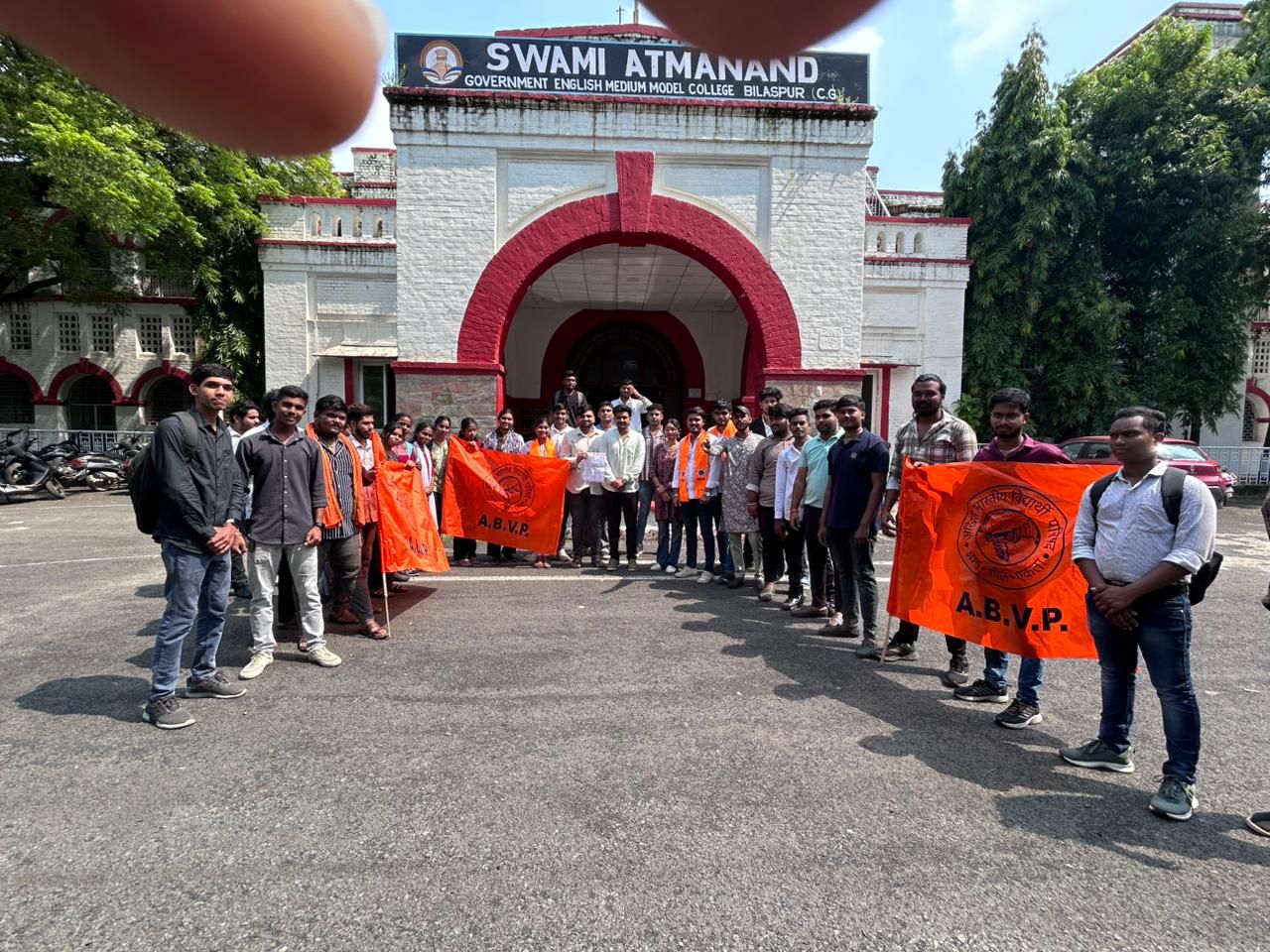 बिलासपुर अखिल भारतीय विद्यार्थी परिषद ने बुधवार को स्वामी आत्मानंद महाविद्यालय के विद्यार्थियों को हो रही लगातार असुविधाओं एवं अव्यवस्थाओं के विरोध में महाविद्यालय प्राचार्य कार्यालय का घेराव किया। विद्यार्थियों ने महाविद्यालय में चल रही समस्याओं जैसे कि कक्षाओं की अनियमितता, प्रशासनिक लापरवाही, एवं मूलभूत सुविधाओं की कमी के समाधान की मांग की। लंबे समय से समस्याओं के निराकरण न होने के कारण परिषद कार्यकर्ताओं को यह कदम उठाने पर विवश होना पड़ा।घेराव के पश्चात प्राचार्य महोदय को ज्ञापन सौंपा गया और तत्काल आवश्यक सुधारात्मक कदम उठाने की मांग की गई।